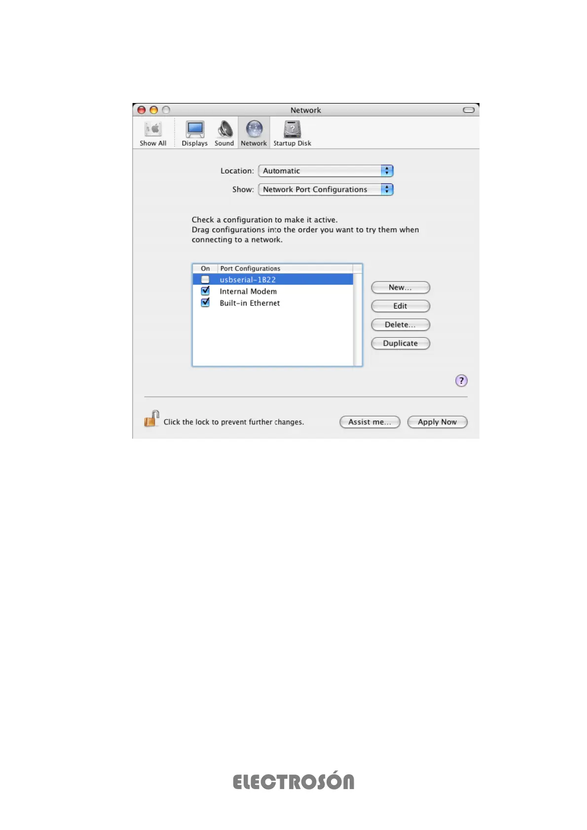 to set the device up a a modem for an Internet connection, select the new port from the