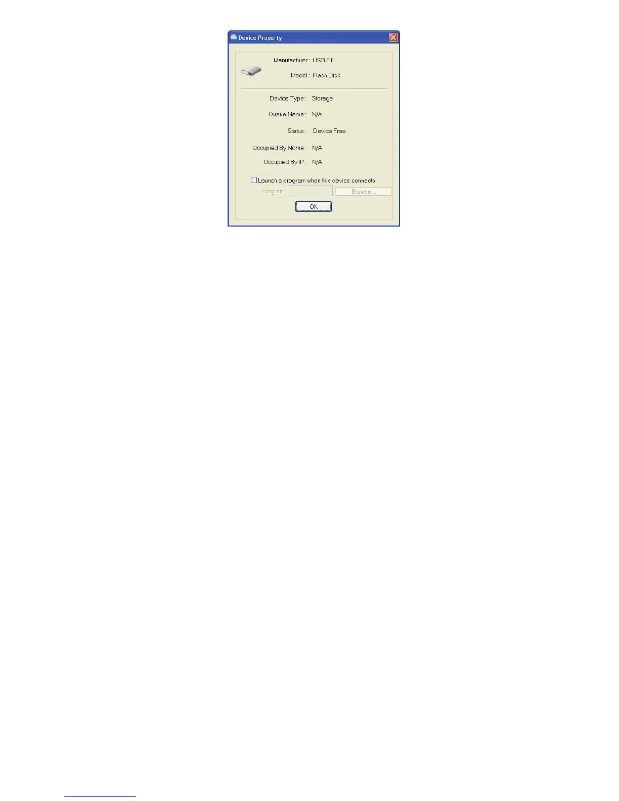 Device Property dialog box displays information of the USB device. If