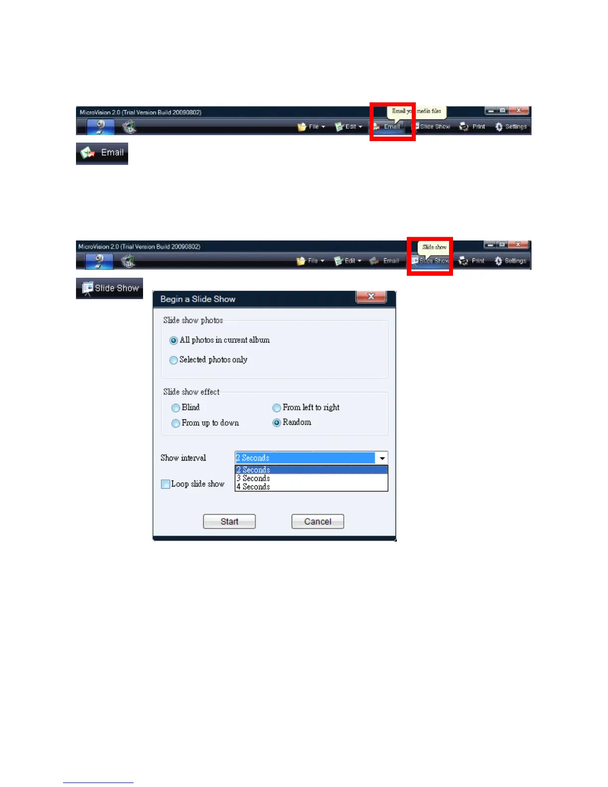 show effects & slide show interval time for setting.