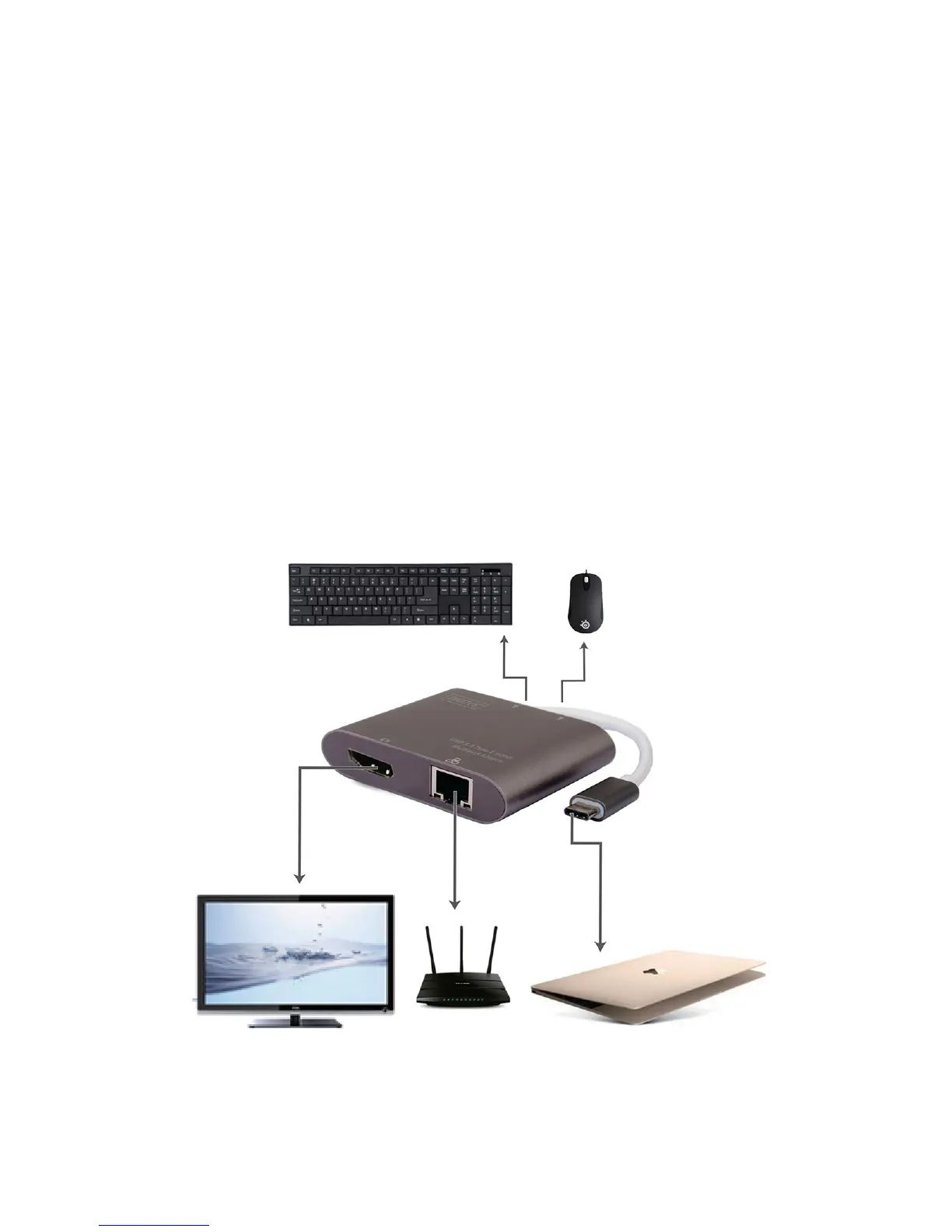 1. Connect the USB-C male port of this product to computer