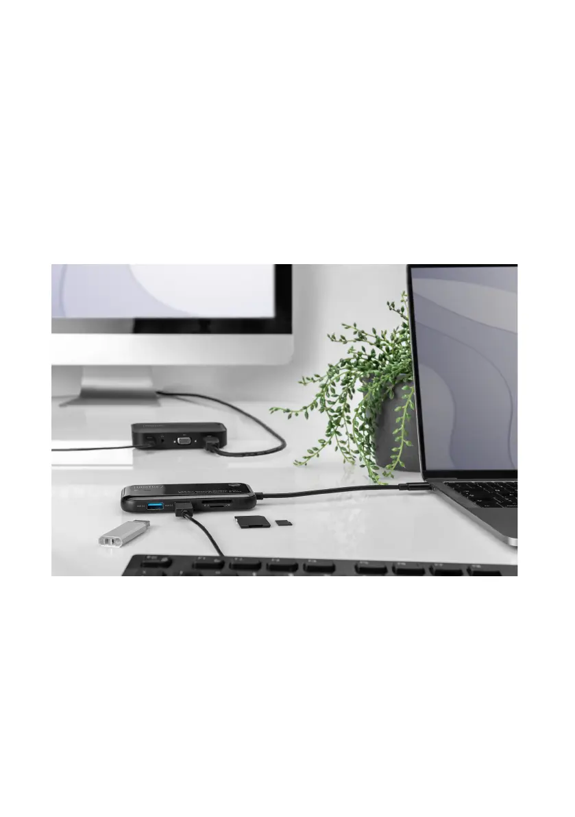 • Transmitter unit: 1 x USB-C™ (Host), 2 x USB A (USB 3.0, 5 Gbps), 1 x card reader