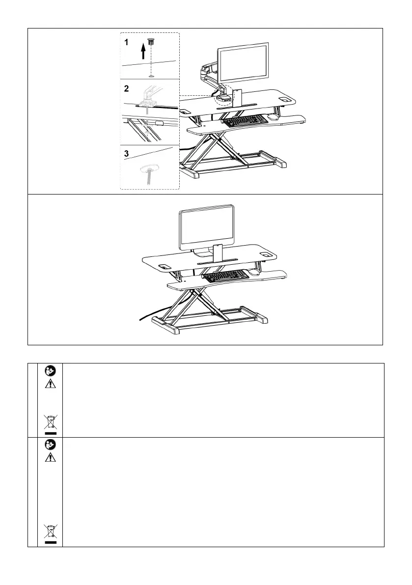 • Stellen Sie sicher, dass die Auflagefläche das Gesamtgewicht der Ausrüstung und