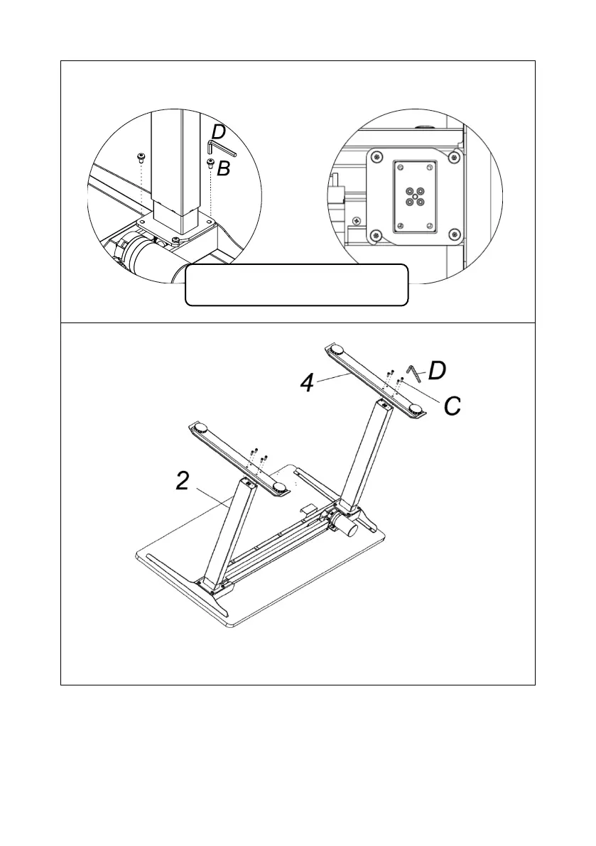 Connect lifting columns to the feet ④, tighten the screws C with allen key D.