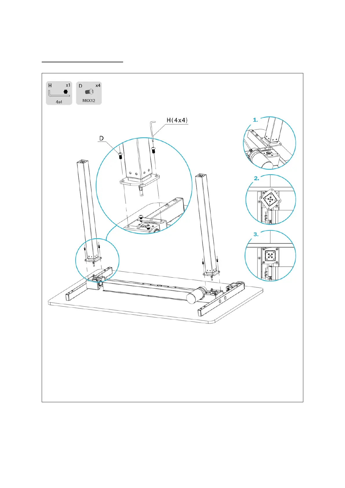 3. After rotating, first use a 4x4 allen key (H) to screw the screws (D) into