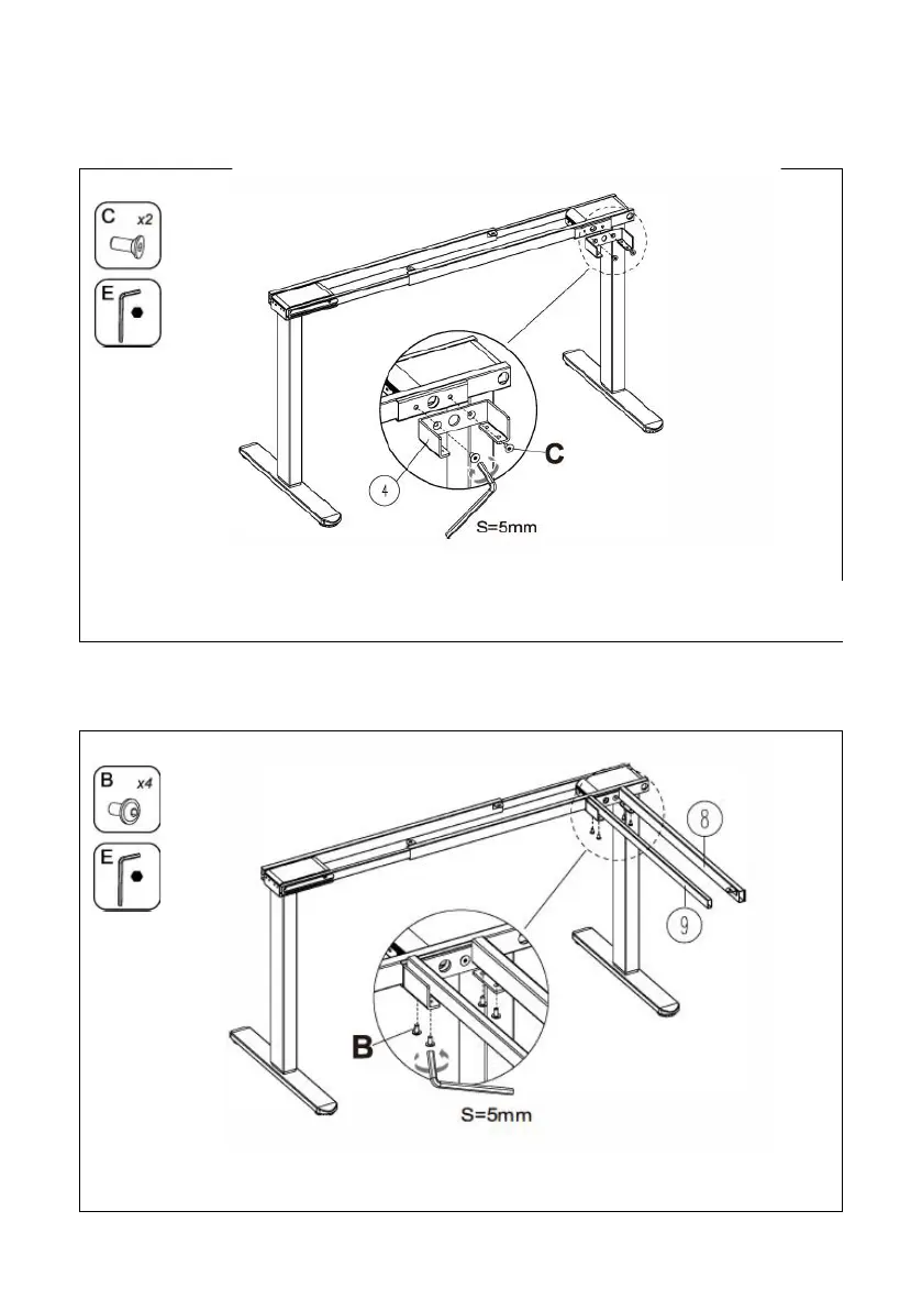 (B), and tighten them with the allen key (E).