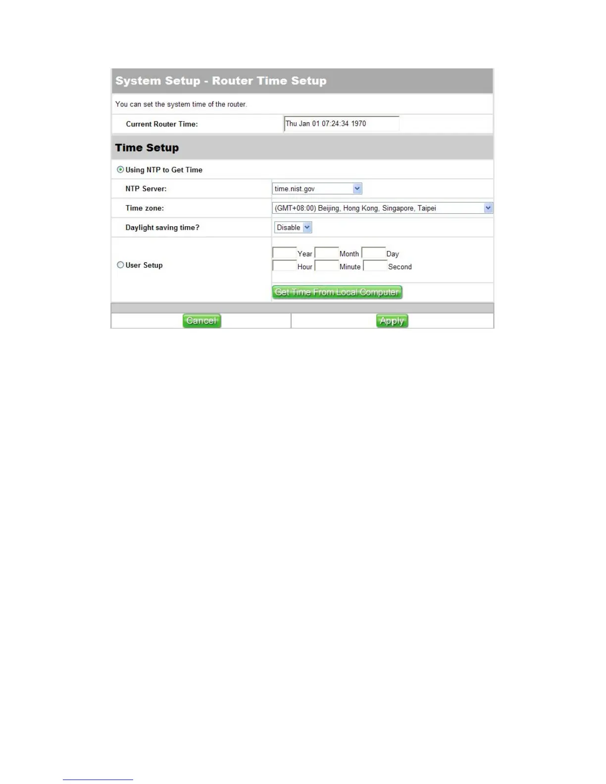applied, the current router time field will display your new router