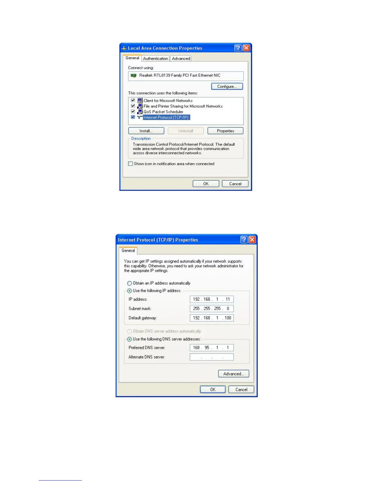 tab. Select Internet Protocol (TCP/IP) and then click Properties.