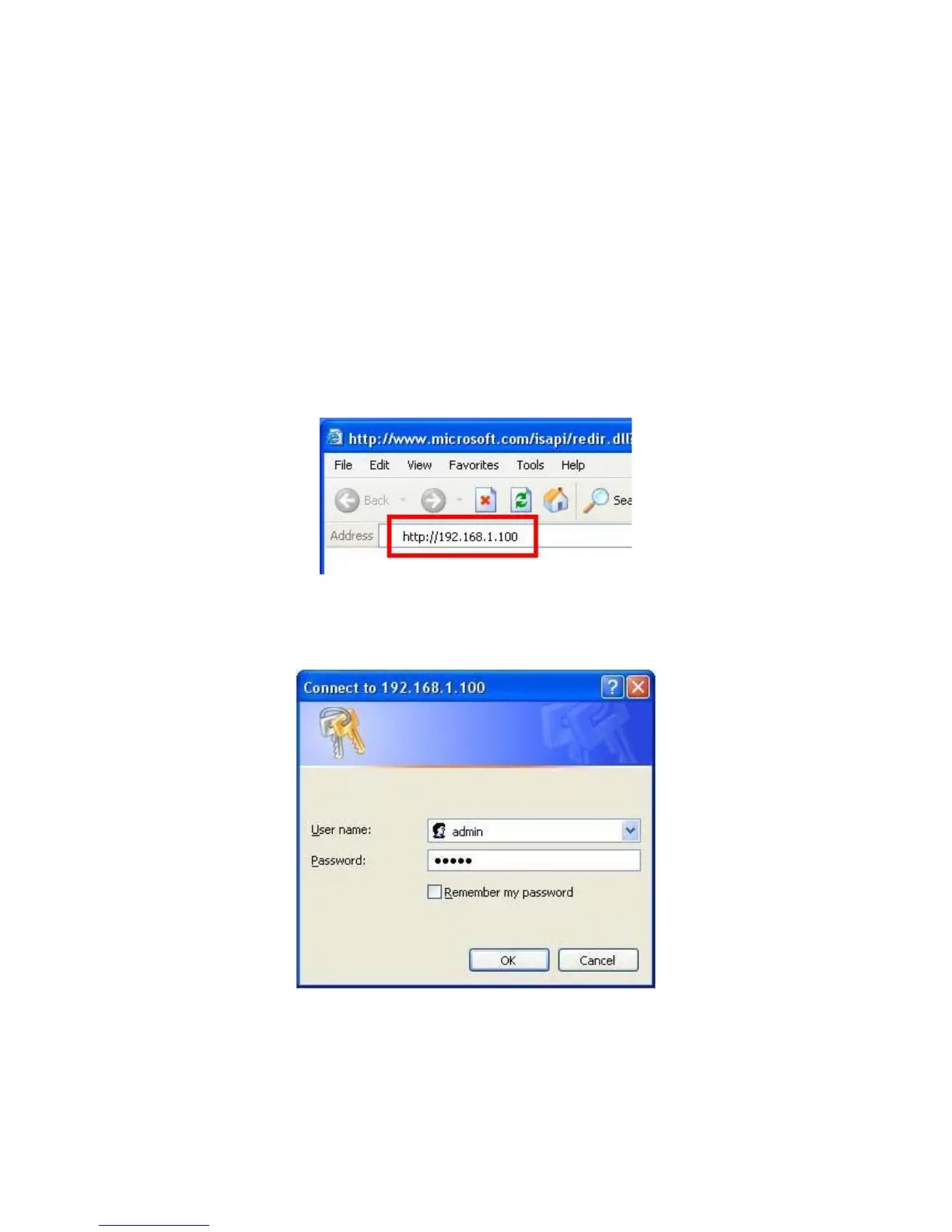 Start your Internet browser, enter http://192.168.1.100 and press
