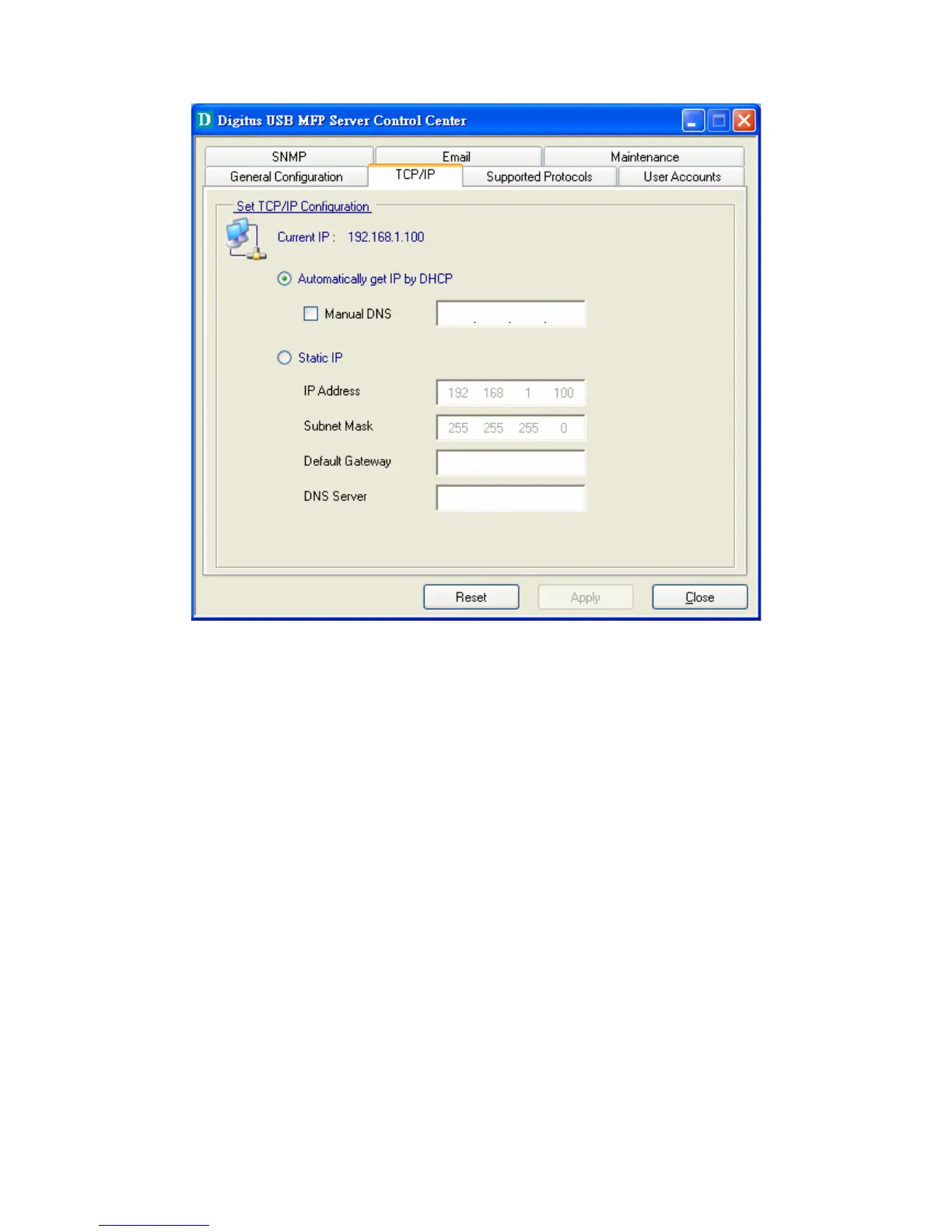 IP by DHCP, you can use desired DNS by clicking the Manual DNS button
