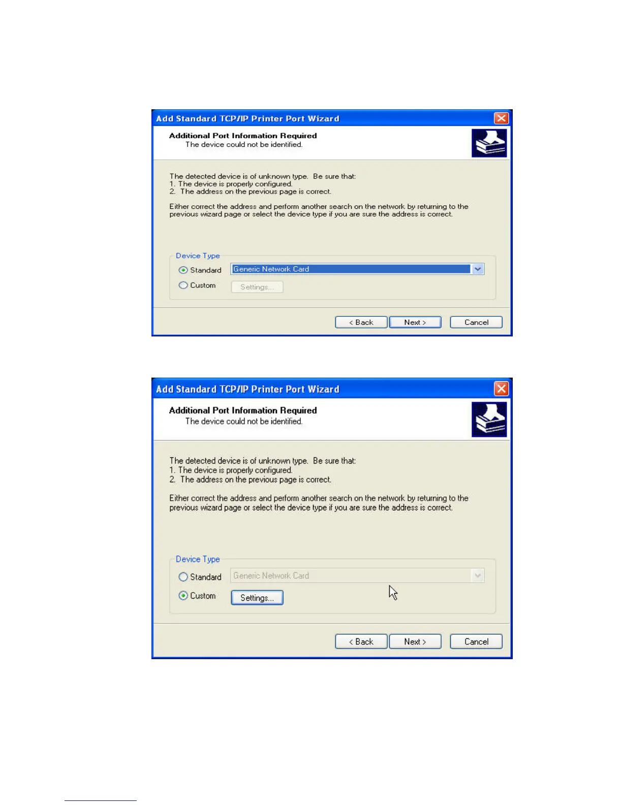 7. Click Custom/settings.