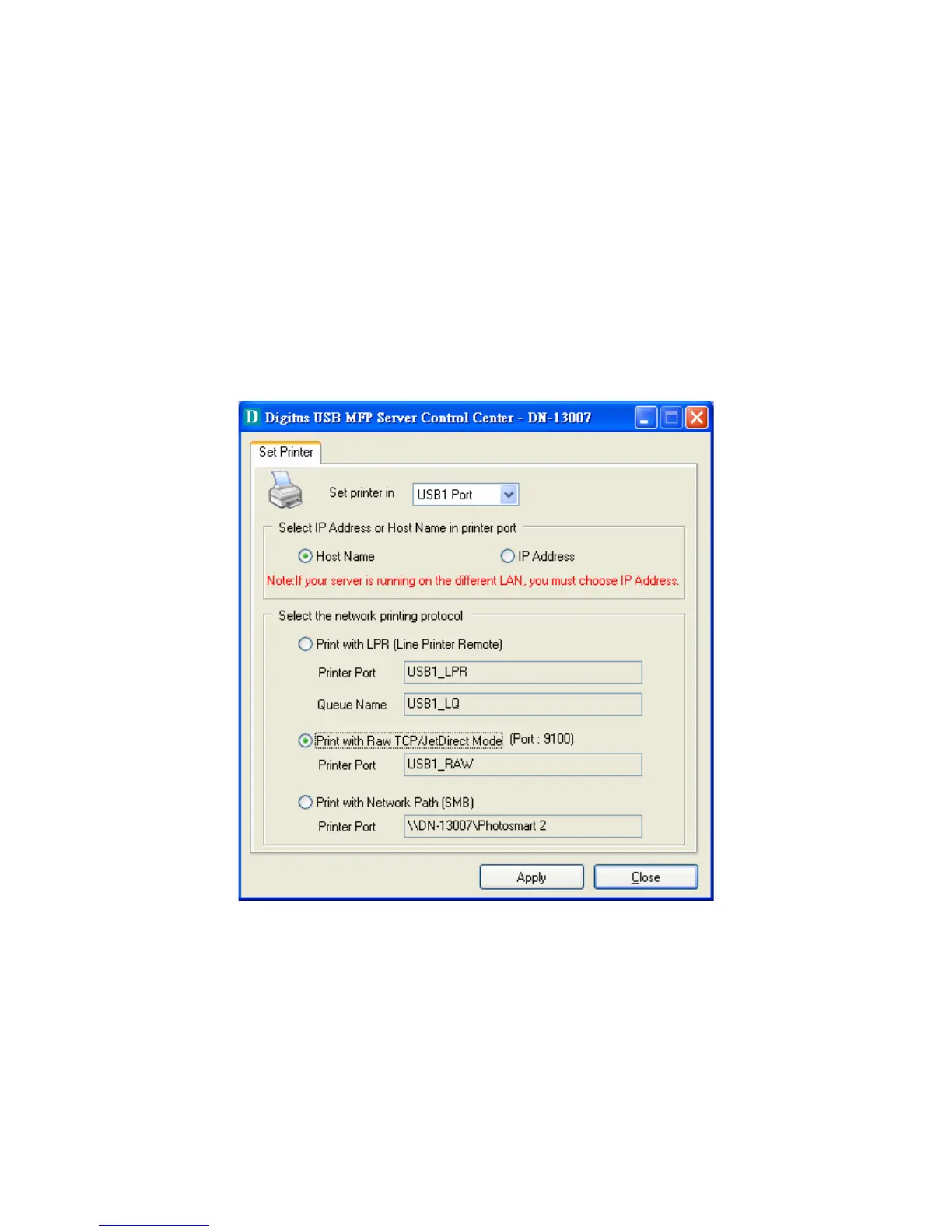 4.4.4 Using the Control Center for Raw TCP/JetDirect Printing
