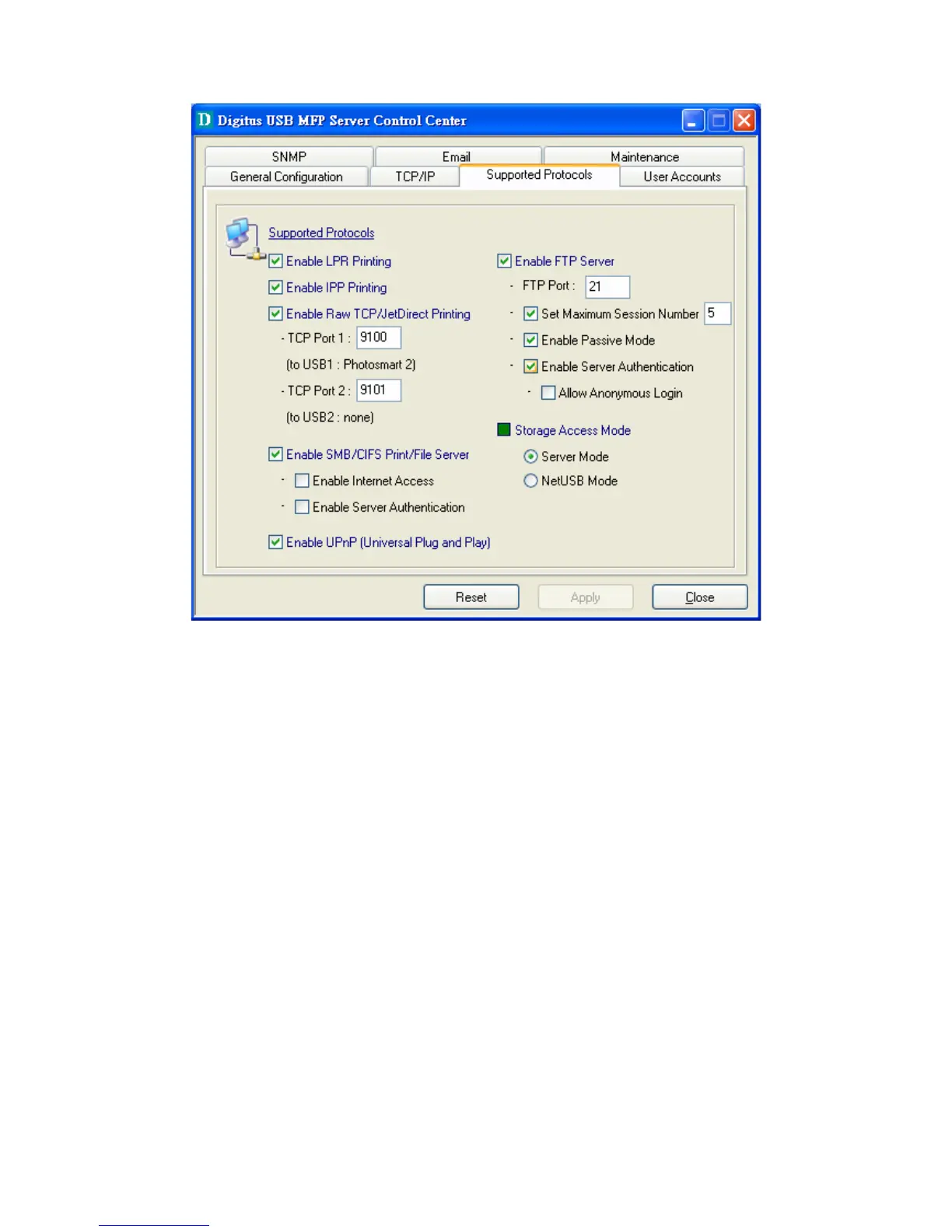 Enable FTP Server: select the item, if you want to support FTP server.