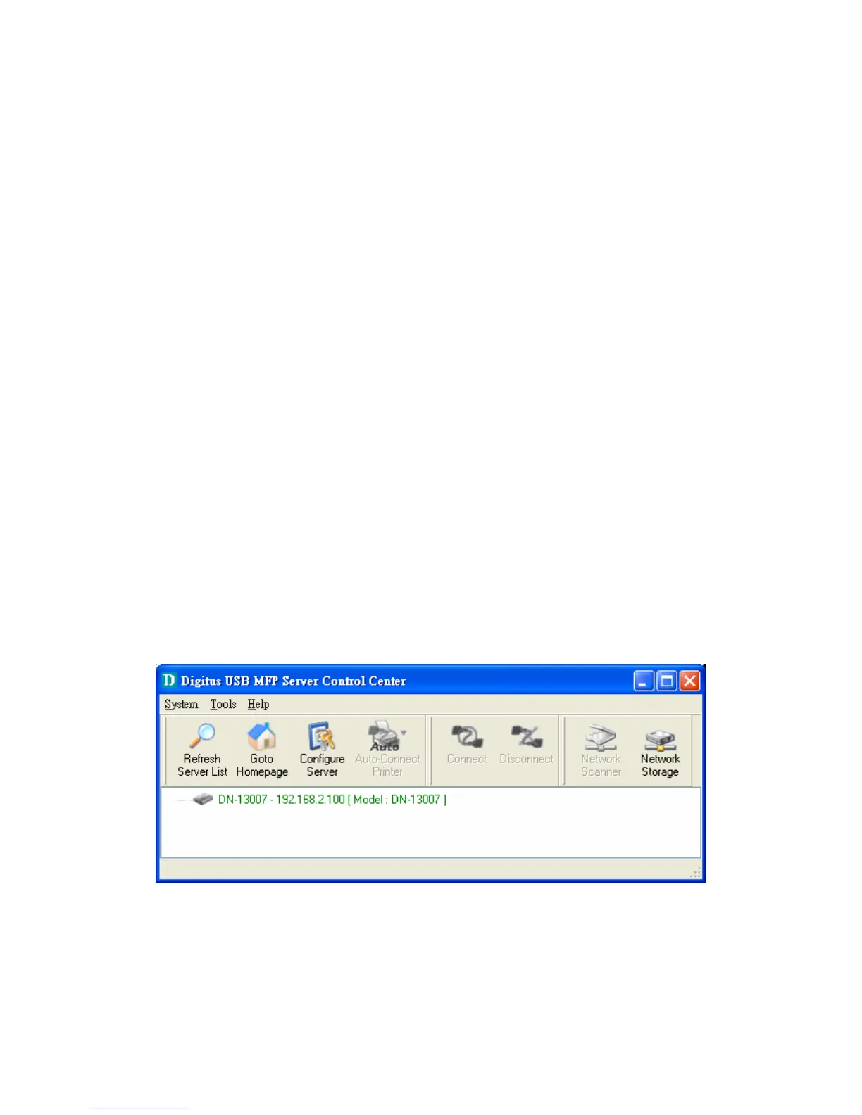 “Control Center” to search for the Digitus USB MFP server on the network and change