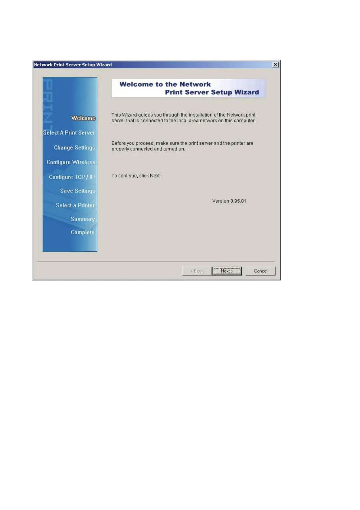 The setup CD will install the print server’s driver, PSAdmin and Setup Wizard into your