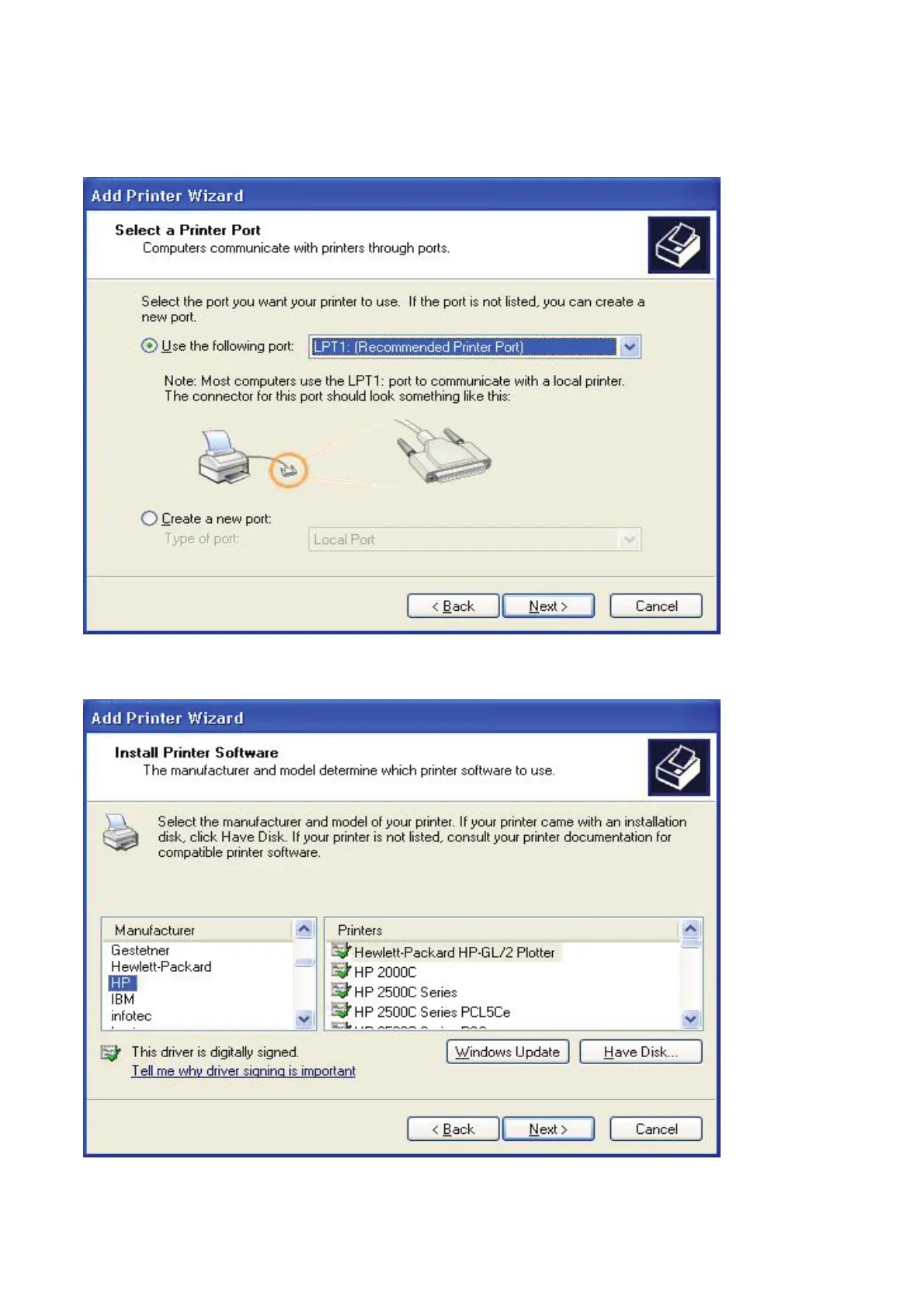 (recommended Printer Port) from the pull-down list. Then click Next.