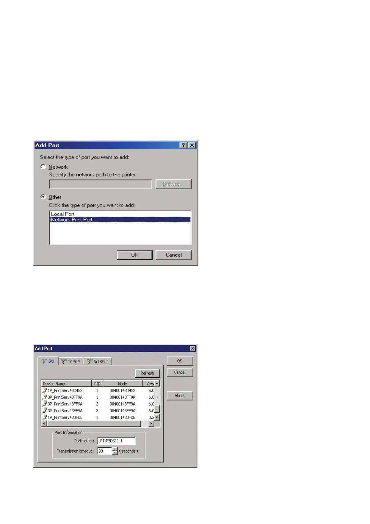 16. The Add Port box will then appear, along with the print server’s Node ID (The last 6