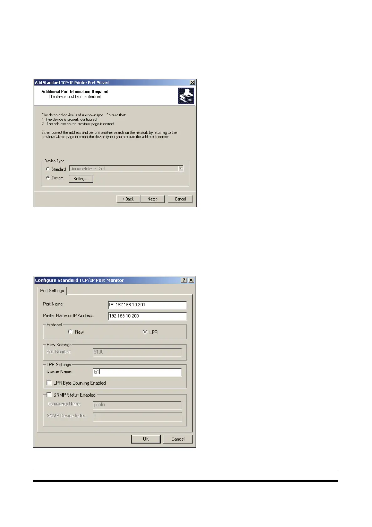 7. In the Configure Standard TCP/IP Port Monitor box as shown in the following
