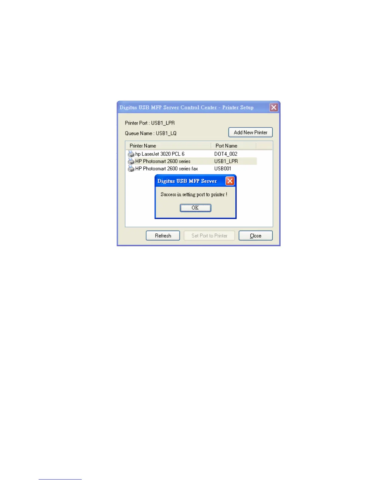 4. Select the desired printer driver and click Set Port to Printer.