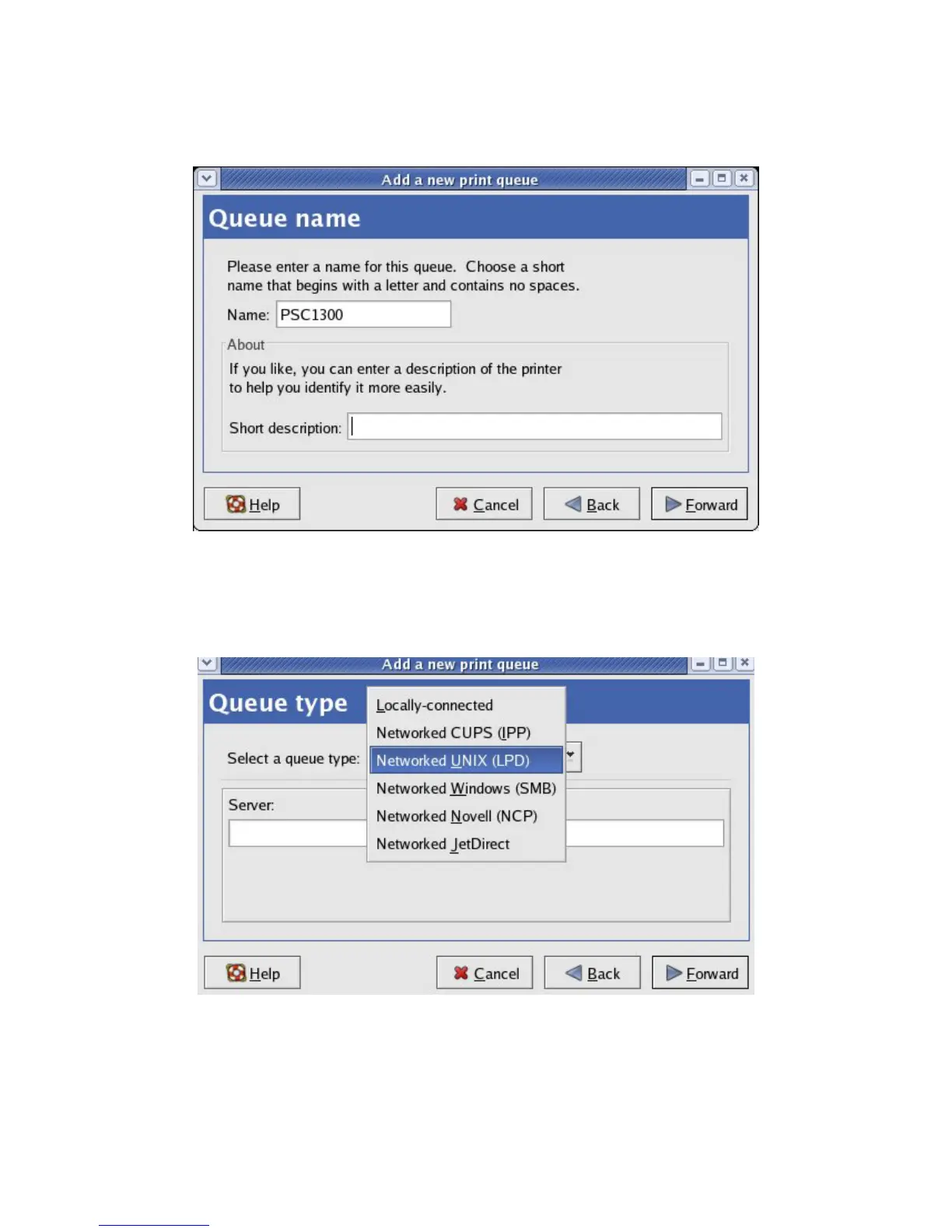 A. Networked Unix (LPD): Fill in the Server’s IP address and queue name