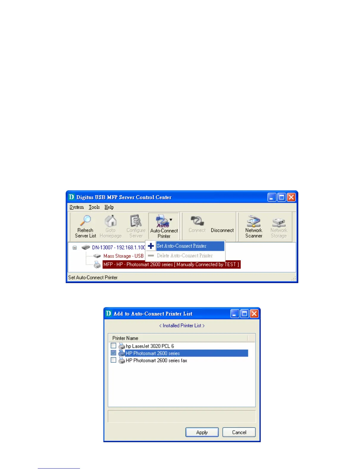 A. In the Control Center, click the MFP server that has the desired printer (or MFP)