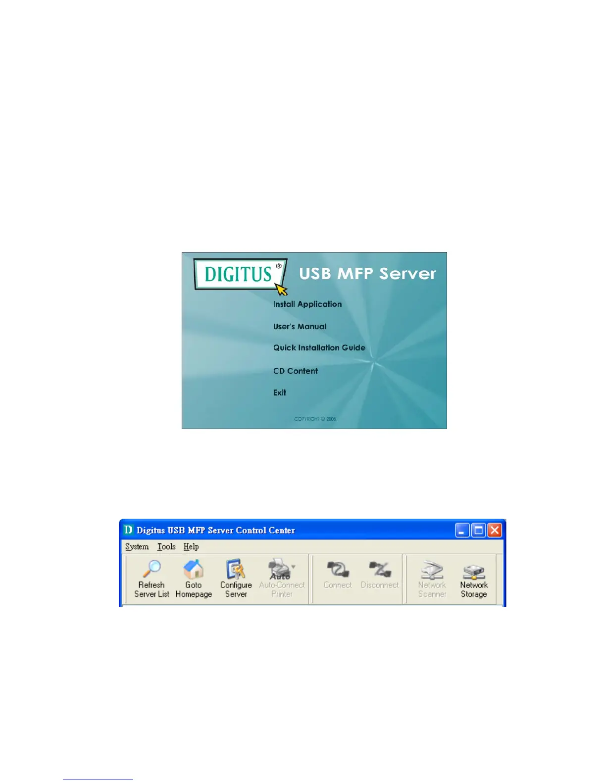 1. Insert the included CD into the personal computer. The Autorun screen as in the