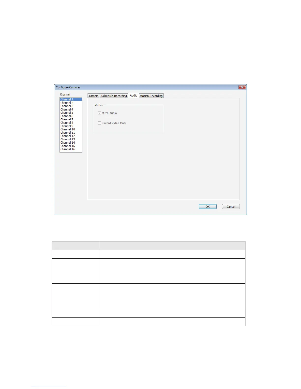 For cameras that support audio, you can use this tab to decide if you