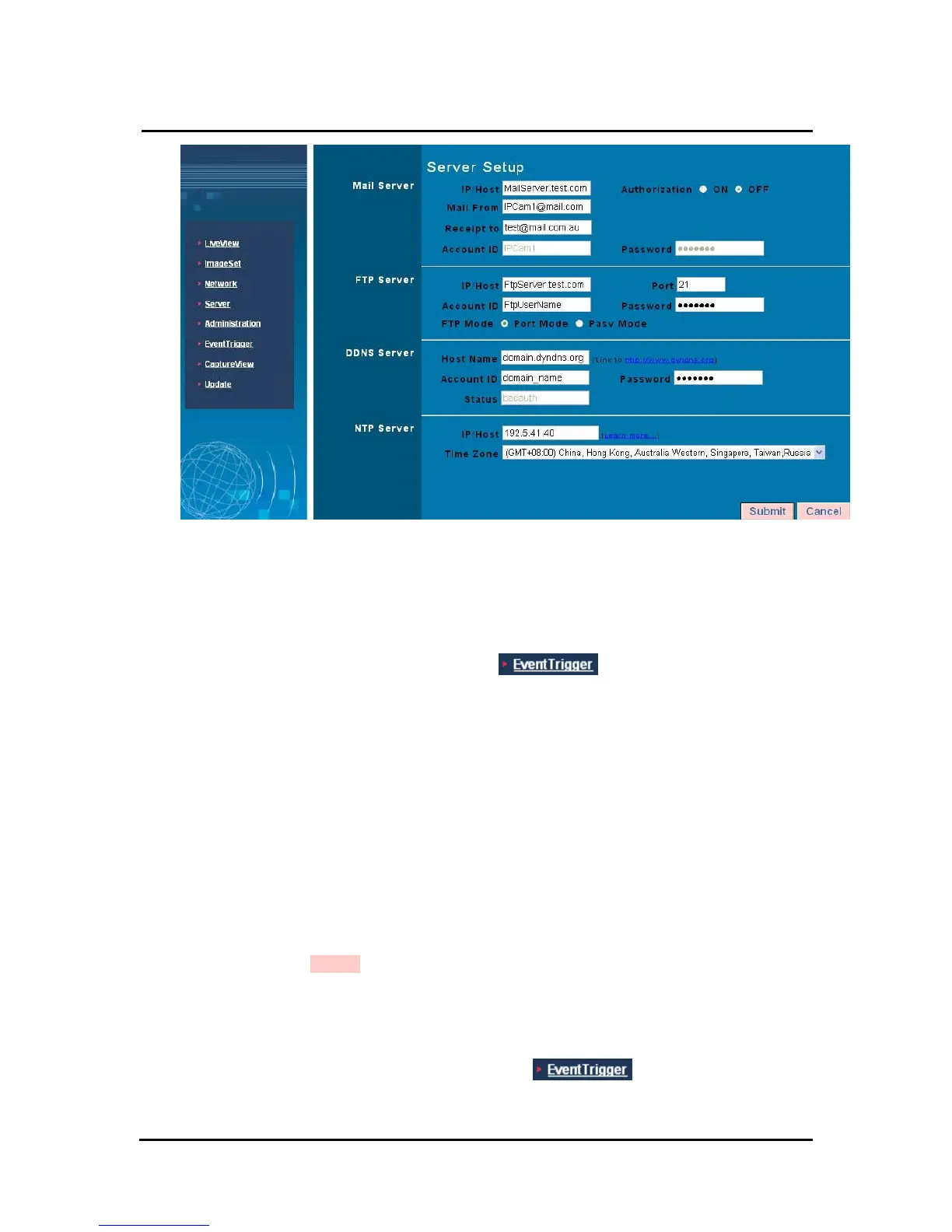 This menu allows you to enter the FTP (File Transfer Protocol) Server settings. You must