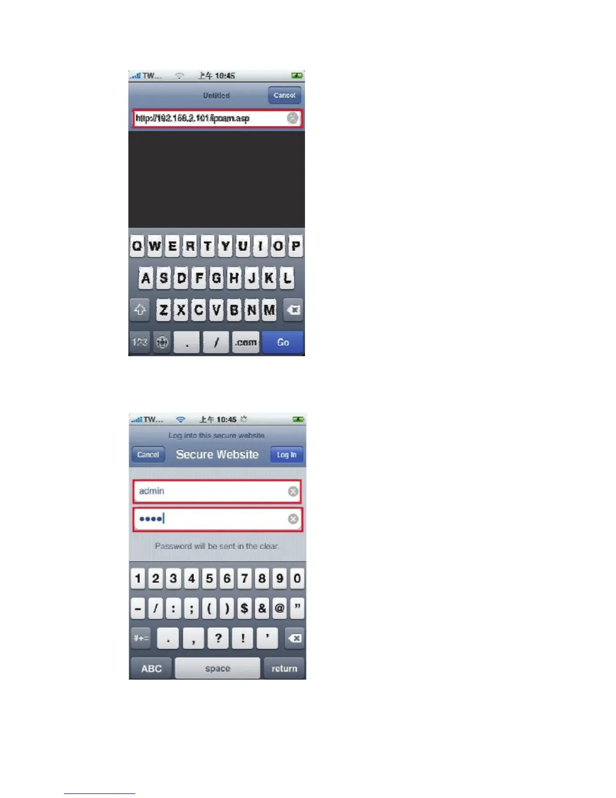 Digitus DN-16035 - iPhone Access: Entering URL and Logging In