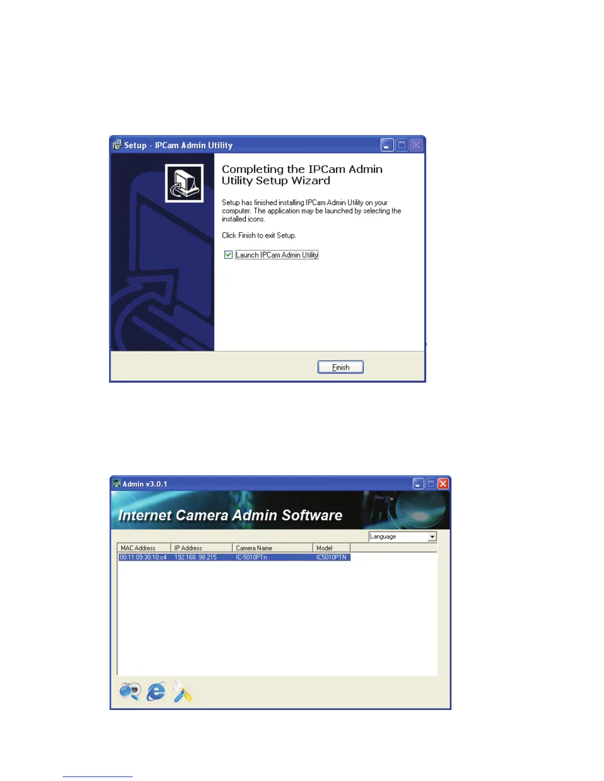 complete. If you wish to launch camera admin software now, keep ‘Launch IP
