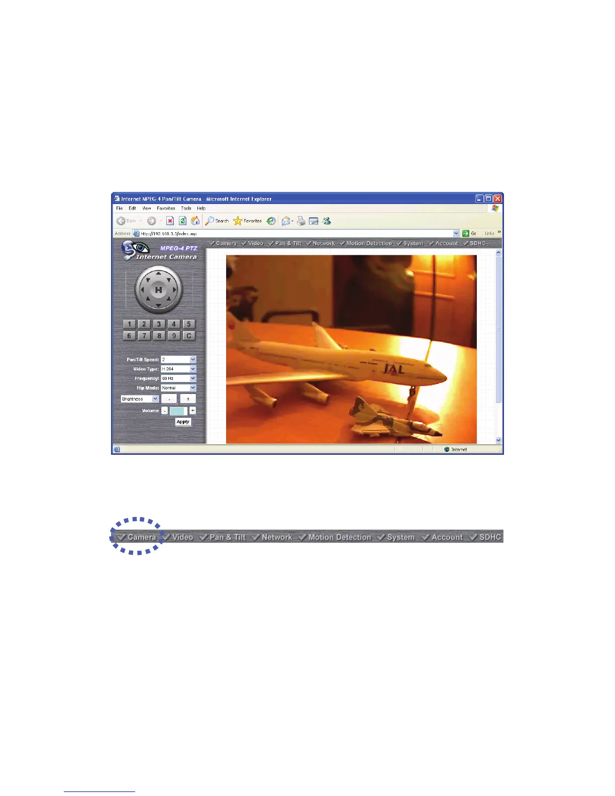 You can always back to this menu by clicking ‘Camera’ on the top of web