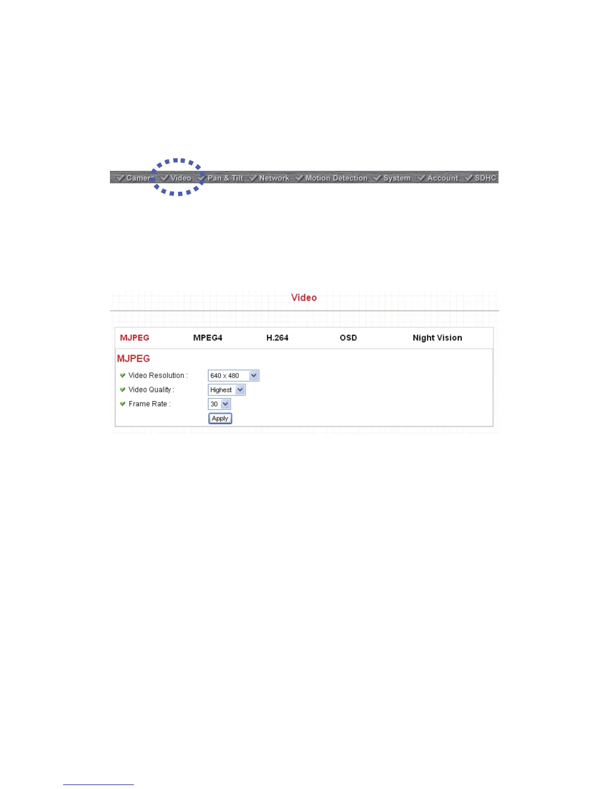 You can change video-related settings of this IP camera in ‘Video’ menu.