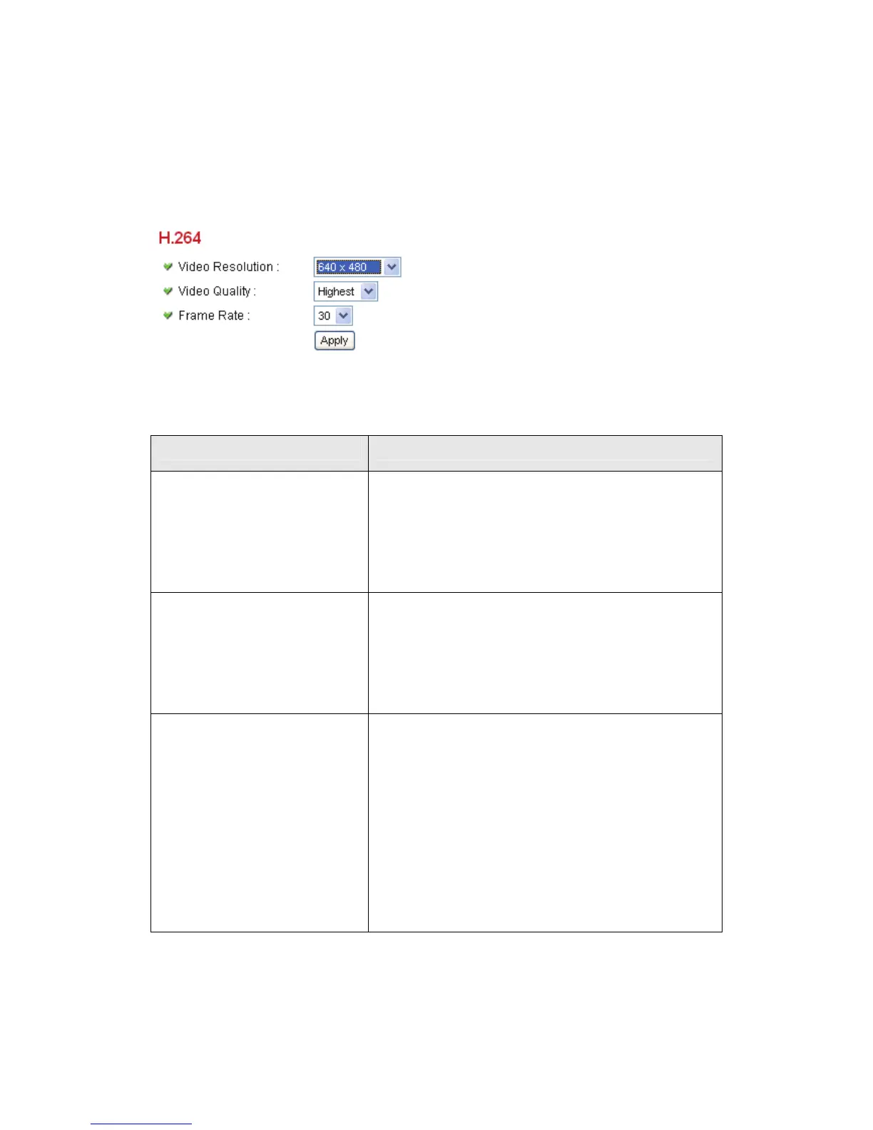 You can adjust video settings when you select ‘H.264’ as video type in