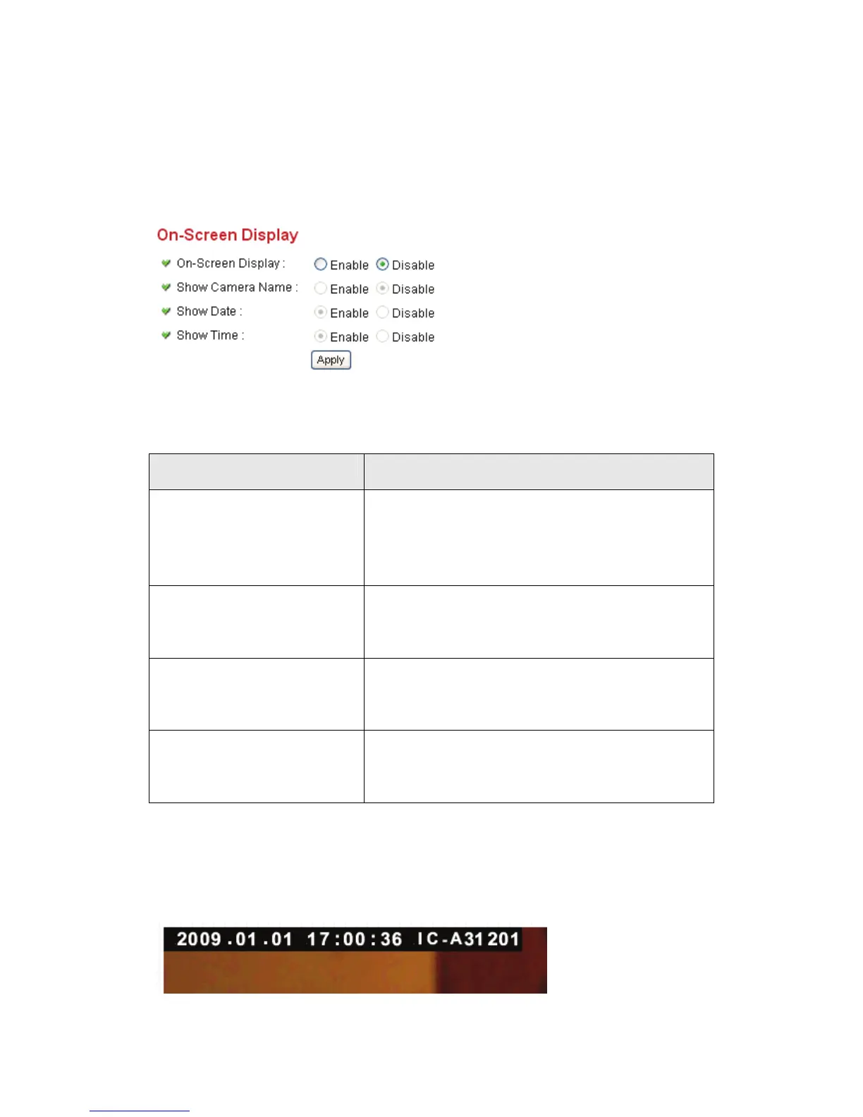 On-Screen Display Select ‘Enable’ to enable on-screen display
