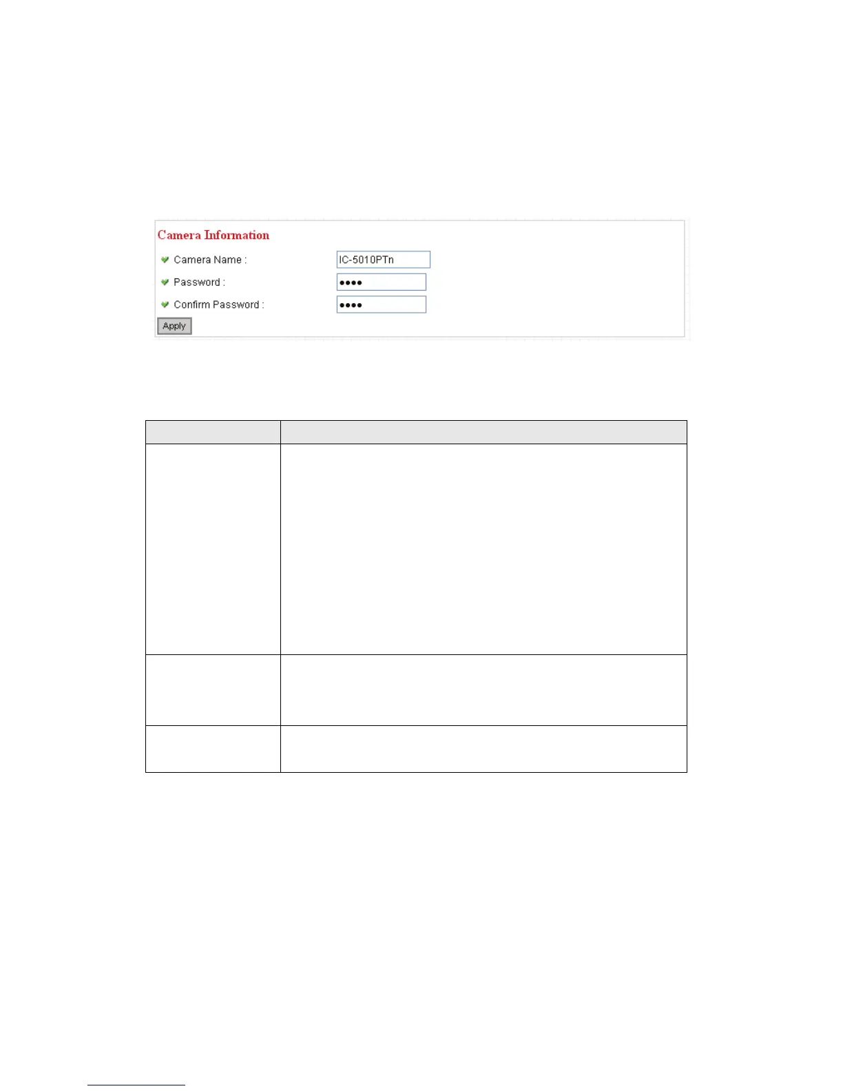 Camera Name Please specify the name of this IP Camera here. This can