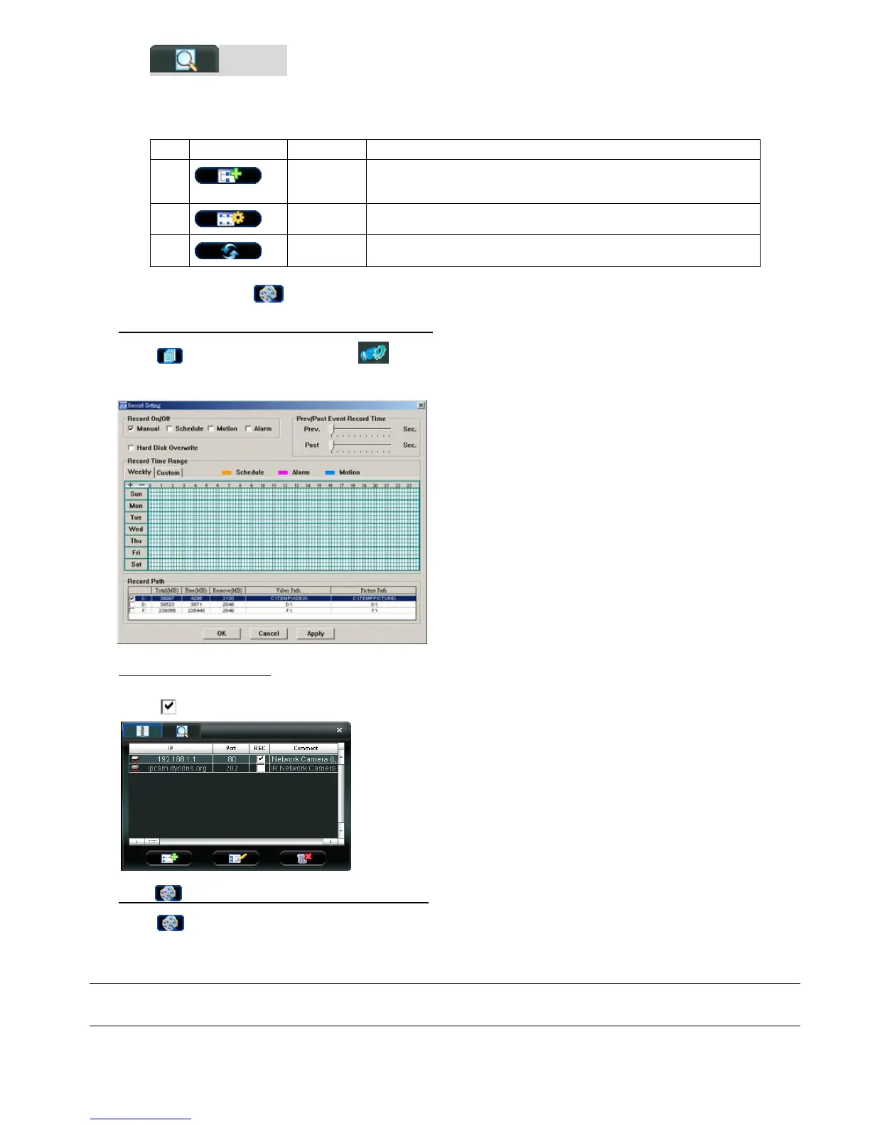 Note: For detailed schedule record setting, motion-triggered and alarm-triggered recording, please refer to