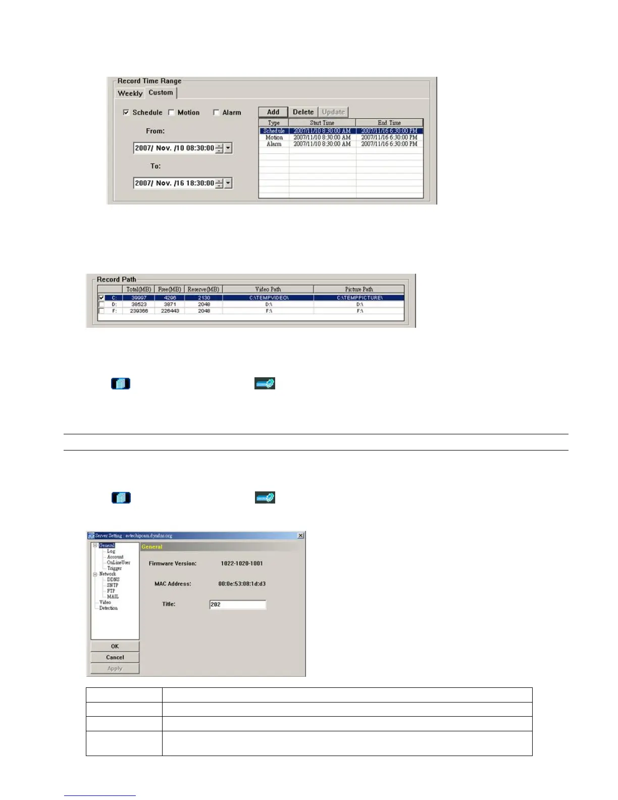 Click “ ” (Miscellaneous Control) → “ ” (Server Setting) to go into the “Server Setting” page, and you can view,