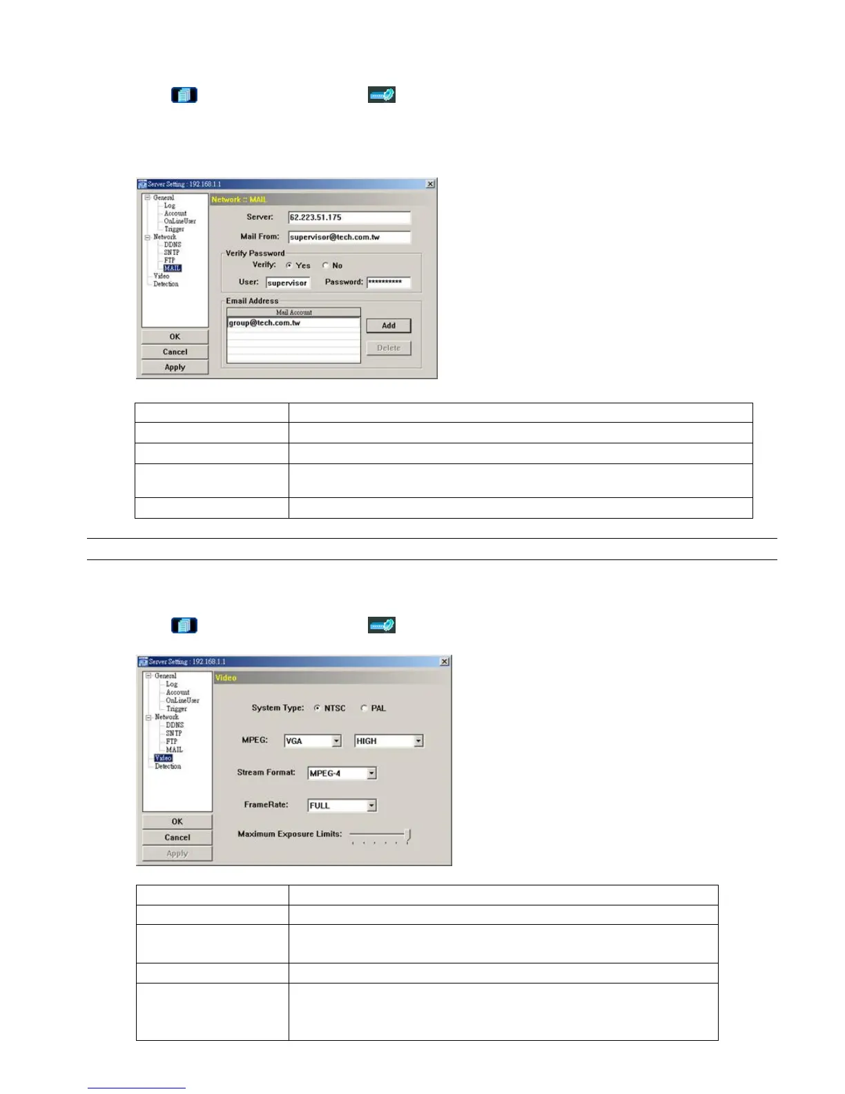 Click “ ” (Miscellaneous Control) → “ ” (Server Setting) → “Video” to go into the “Video” page.