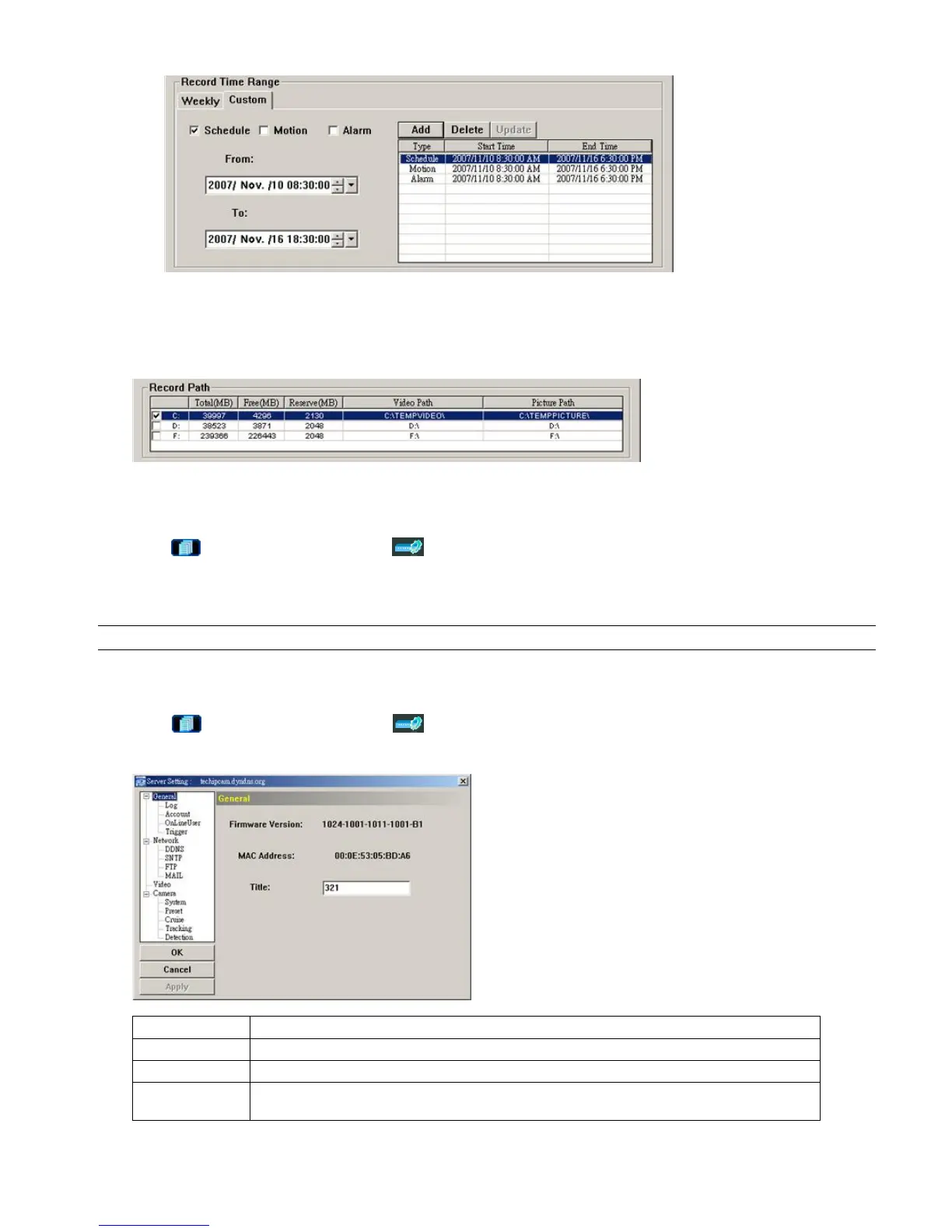 Click “ ” (Miscellaneous Control) → “ ” (Server Setting) to go into the “Server Setting” page, and you can view,