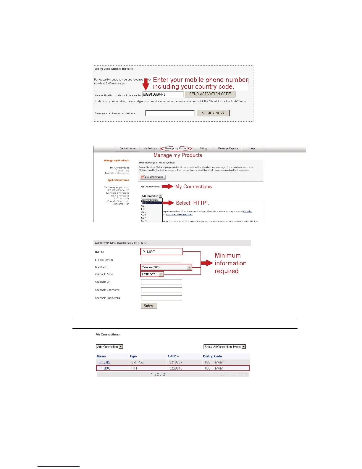 Step4: Go back to Clickatell, and click the tab “Manage my Products”.
