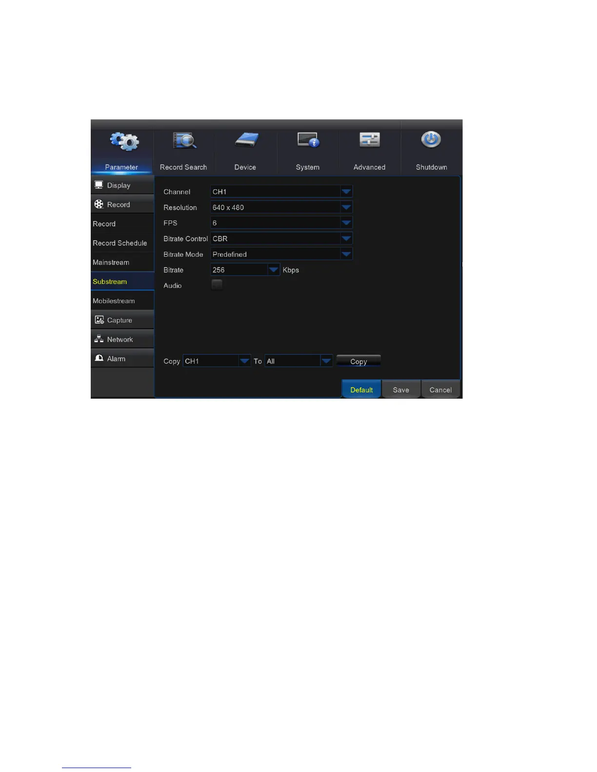 Bitrate Control: Select the bitrate level based on the complexity of the scene. For a simple scene,