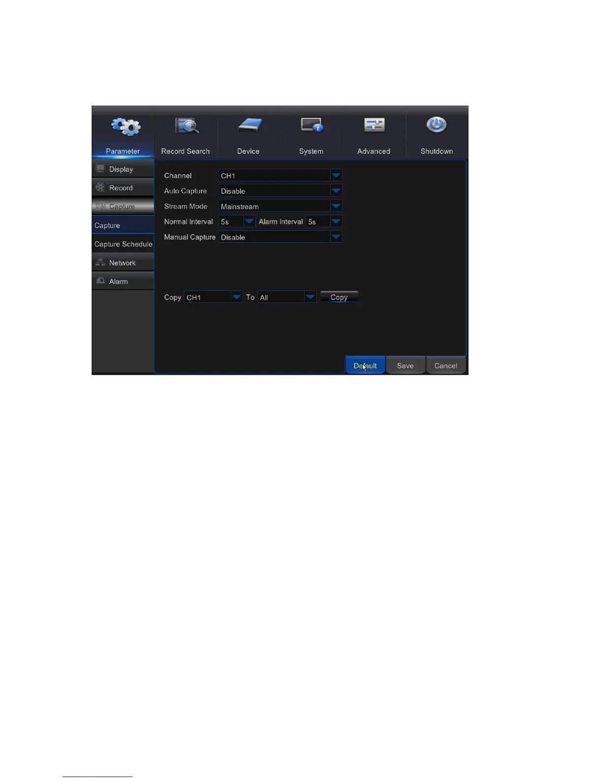 Channel: Select the channel to set its capture parameters.
