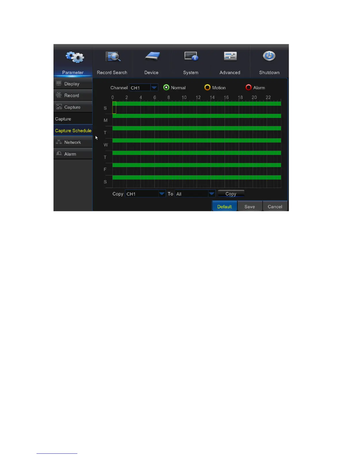 Normal: When the time slot is marked green, this indicates the channel is capturing snapshots