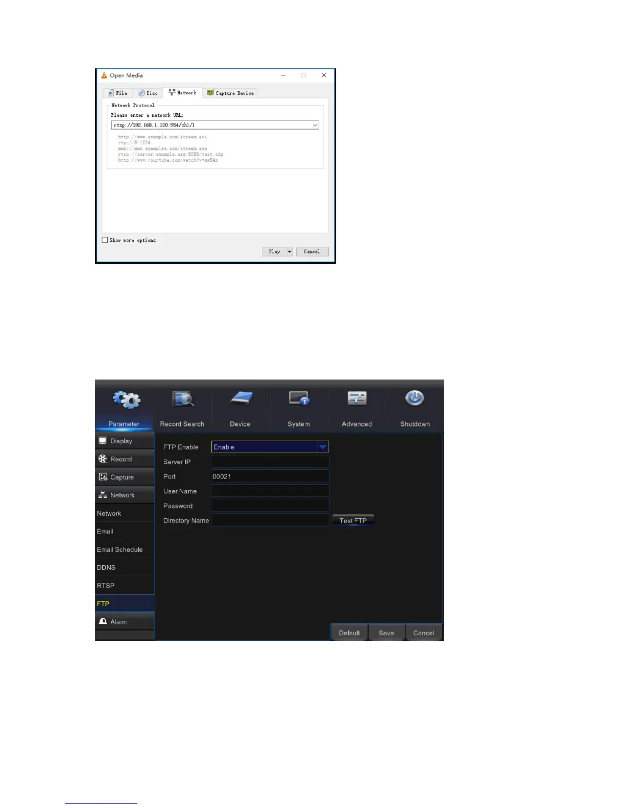 This menu allows you to enable FTP function to view and load captured snapshots from DVR to