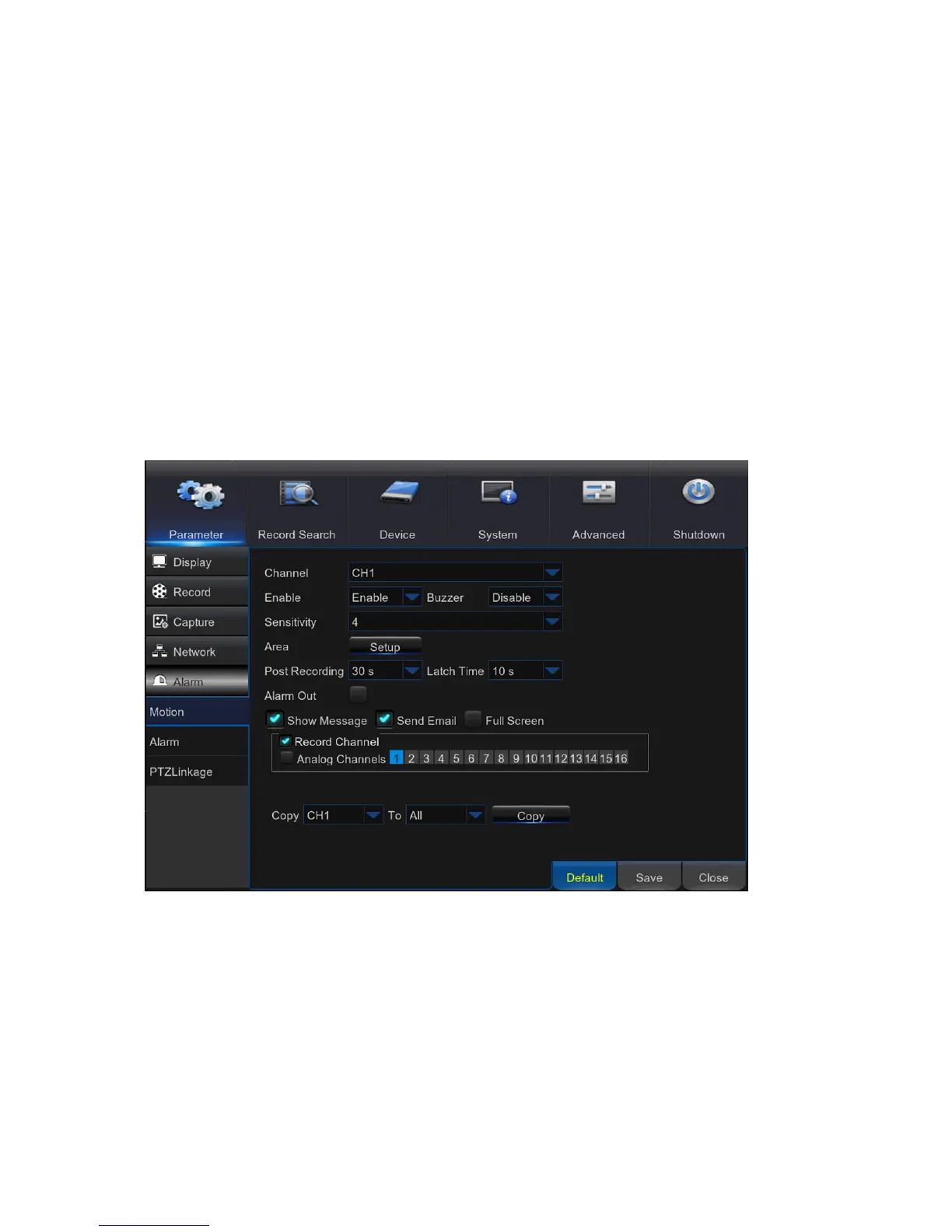 Channel: Select the channel you want to set the motion detection.