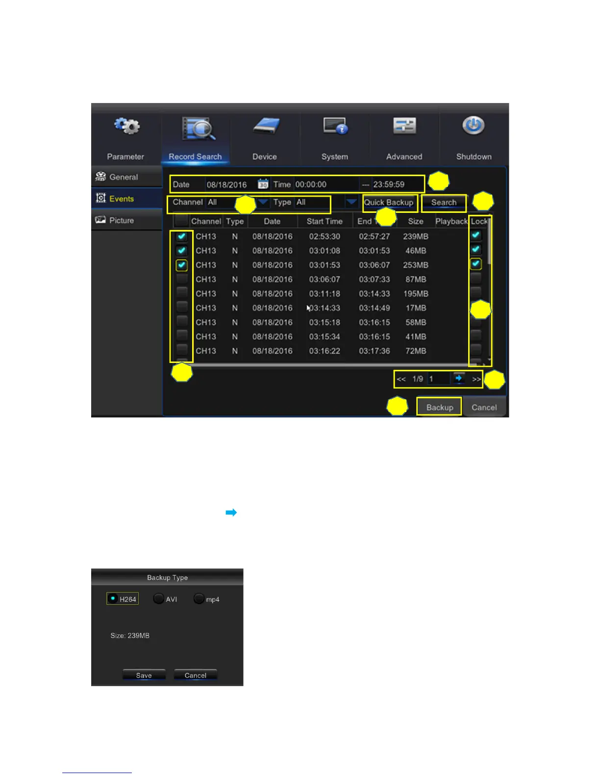 (All/Normal/Alarm (including Motion & IO)/Motion/IO).