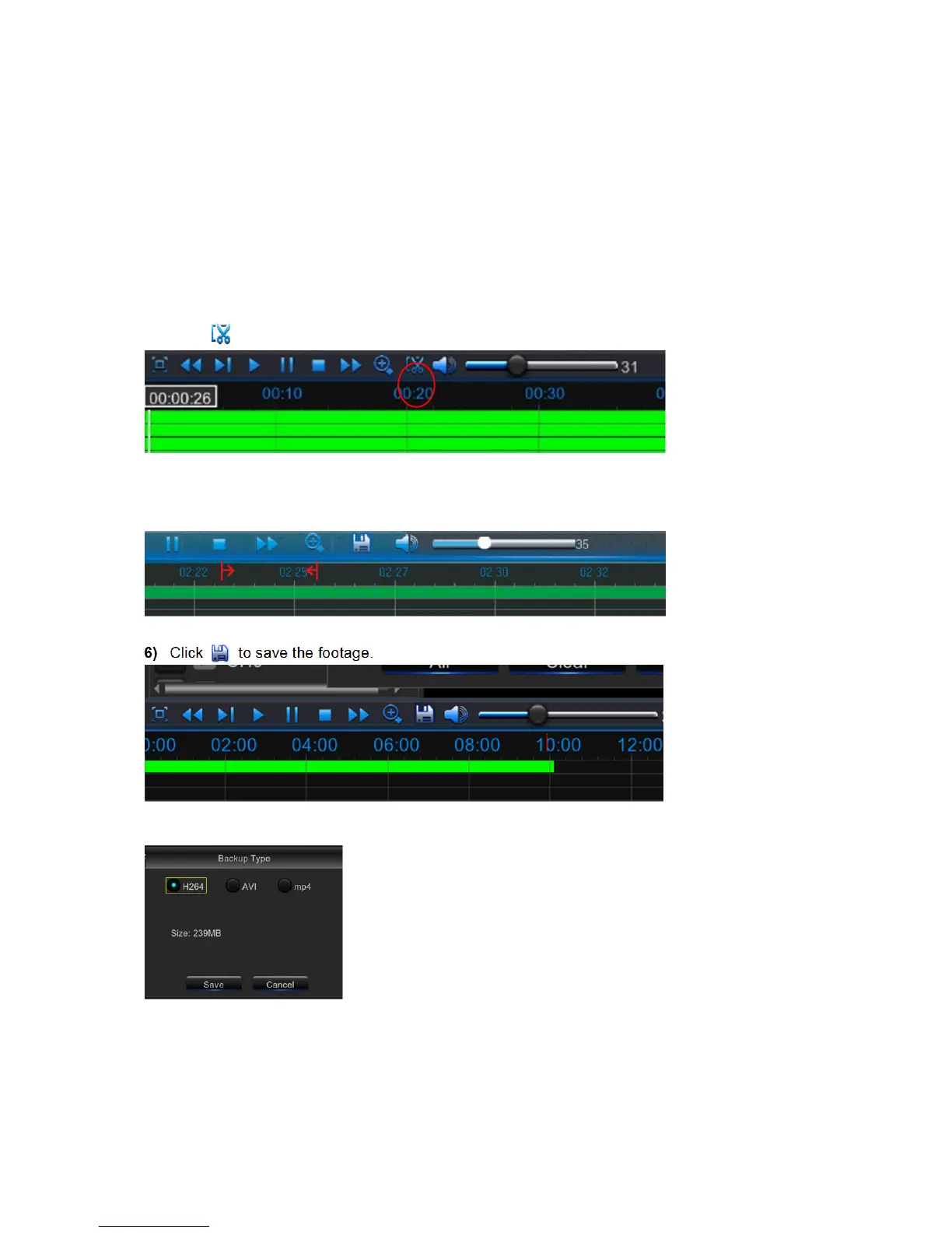 Click on the Time Bar to mark the beginning of the video footage you wish to backup.
