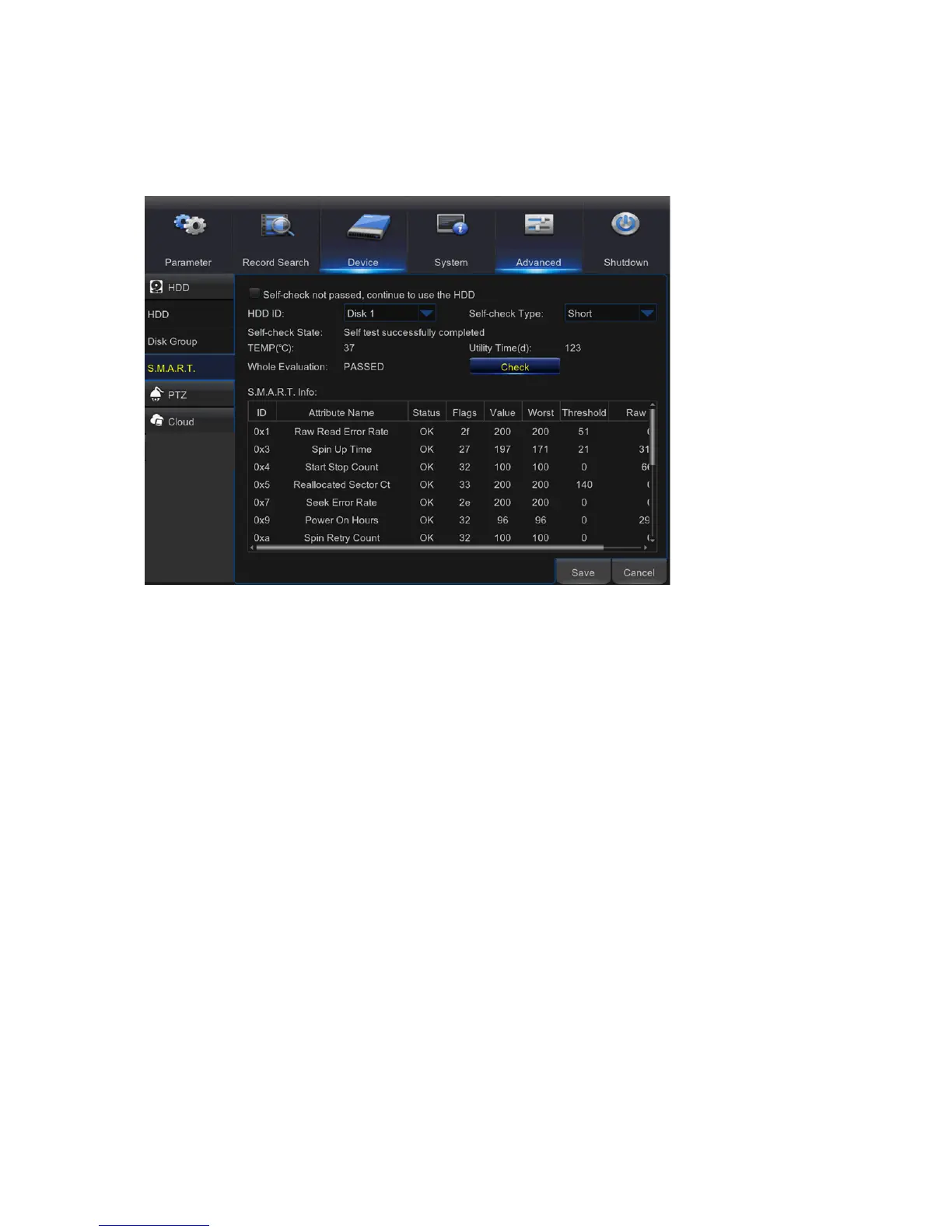 This function will help to check the HDD health. Please note that due to the system limitation, your