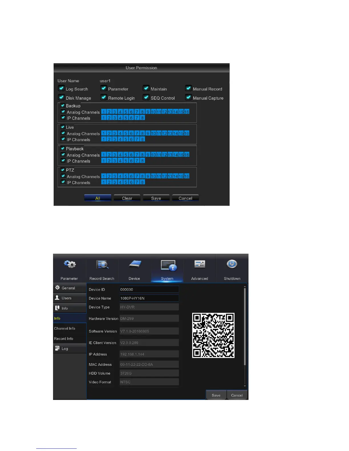then click Permission. The user in Admin level has all permissions to the system. After modify the