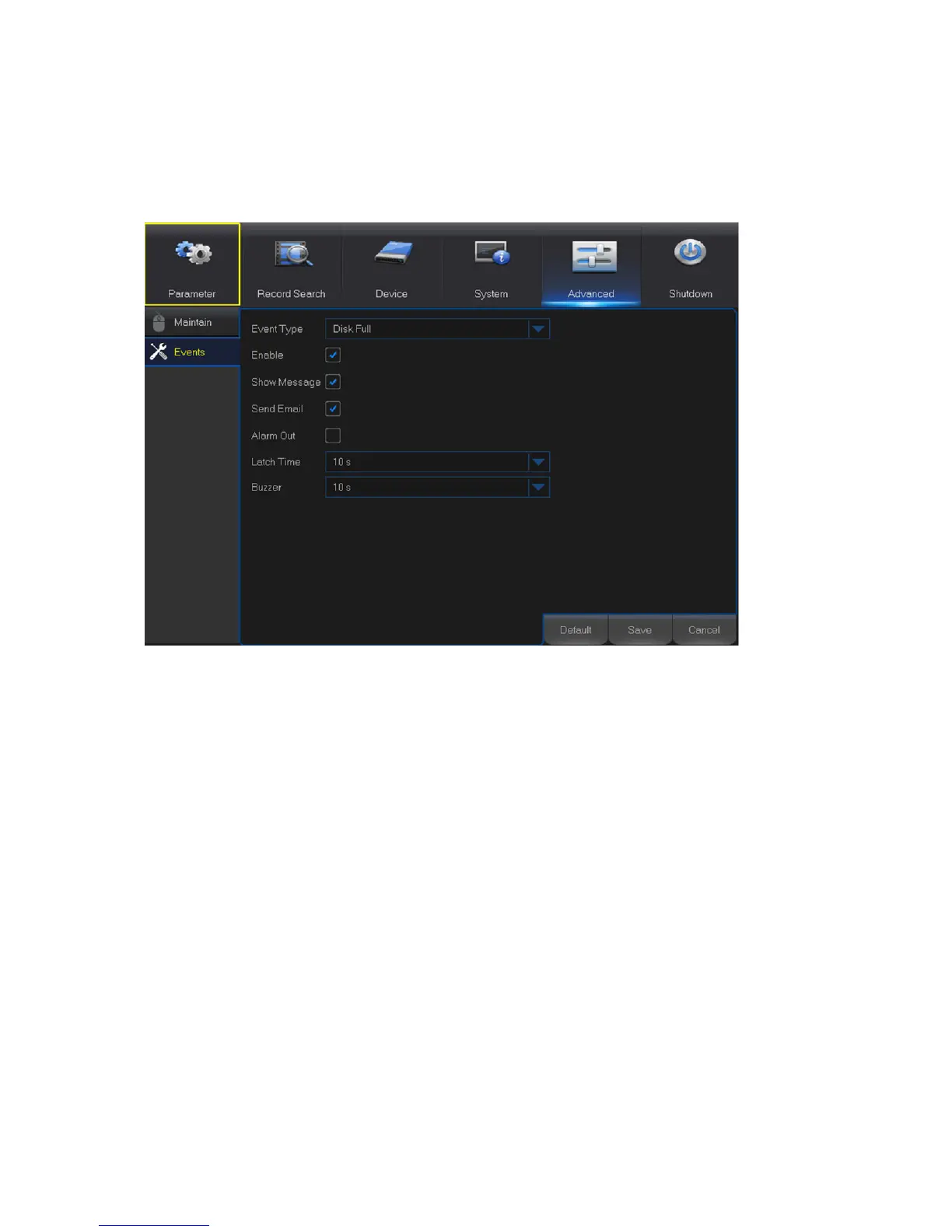 This menu allows you to set the type of events that you want the DVR to inform you.