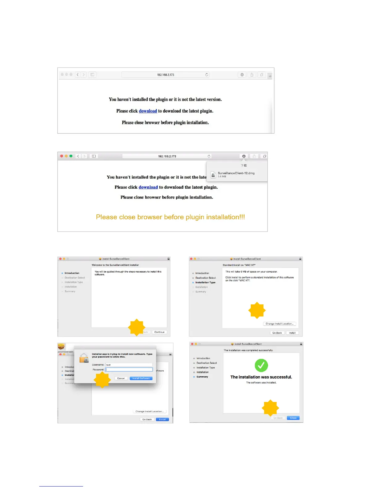 2) Download the plug-in “SurveillanceClient.dmg”, locate the downloaded file and double click it.